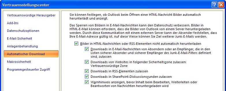 bilder in outlook e mails automatisch anzeigen herunterladen